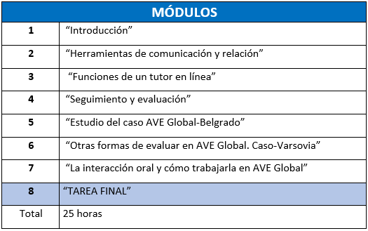 Curso de Acreditación de tutores AVE Global en línea